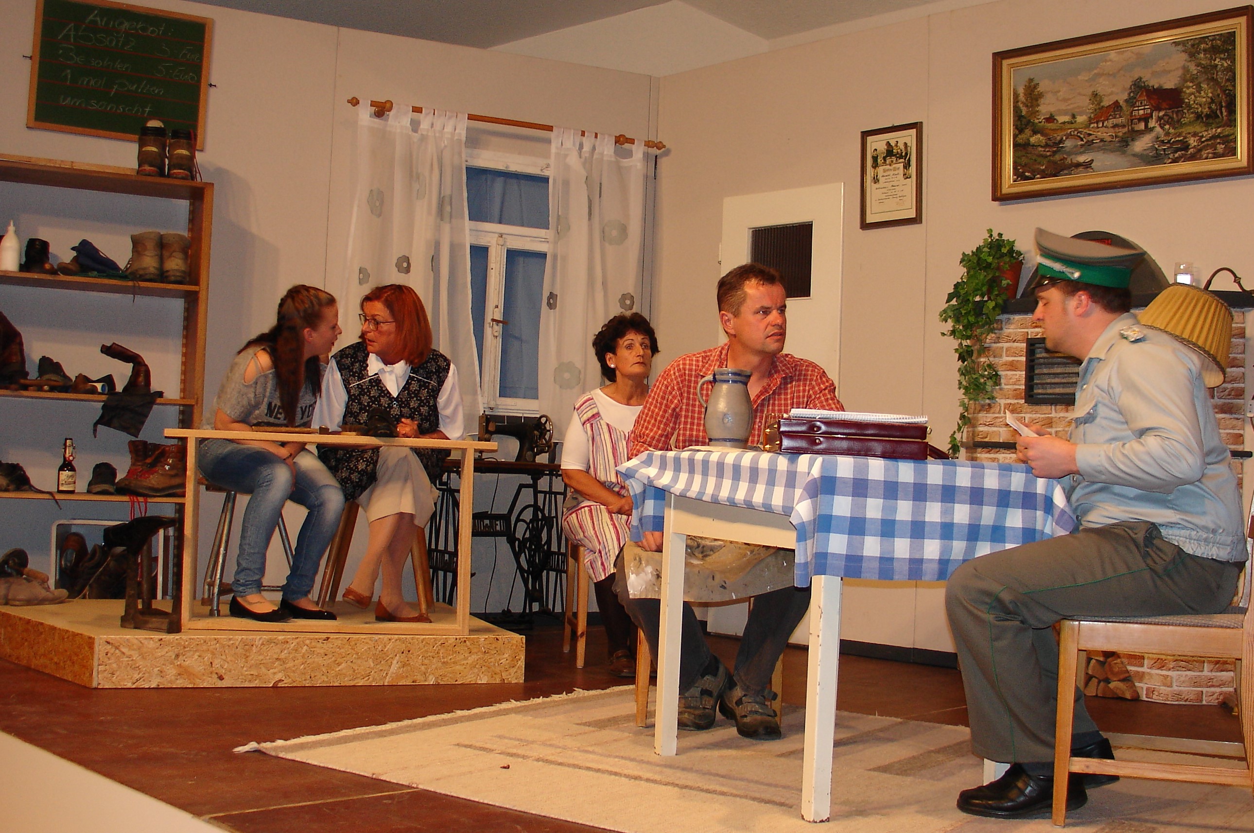 Mit dem Schreckensruf „D´ Sau isch weg, wo isch mei Rosa“ stürzt Emil Schmirgele in die Schusterwerkstatt, wo sein bester Freund Eugen Hurgele mit seinem italienischen Gesellen Roberto neue Sohlen auf die Schuhe nagelt. „Du Schmirgele“, entgegnet der Freund erstaunt, „i hau gmeint, dei Frau heißt Josefa“.