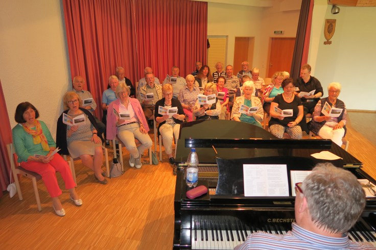 Ein sommerlich sonniger Samstagnachmittag im Mai – mit Sicherheit kein idealer Termin für ein gemeinsames Singen im Saal des Bürgerhauses Hohengehren, oder doch? Der Liederkranz Hohengehren als Veranstalter durfte sich eines Besseren belehren lassen. In Chorstärke waren rund 30 Personen gekommen, um gemeinsam zu singen. „Einfach nur singen!“, wie eine Teilnehmerin es auf den Punkt brachte. Denn keine andere Jahreszeit bietet so viele Lieder an wie der Frühling und der Monat Mai. Ein Teil davon gehört noch heute zum Liederkanon der Schulen in Baden-Württemberg, so das Lieblingslied vieler Grundschulkinder: „Alle Vögel sind schon da“, „Der Mai ist gekommen“, „Es geht eine helle Flöte“ und Wolfgang Amadeus Mozarts unsterblicher Evergreen „Komm, lieber Mai“.