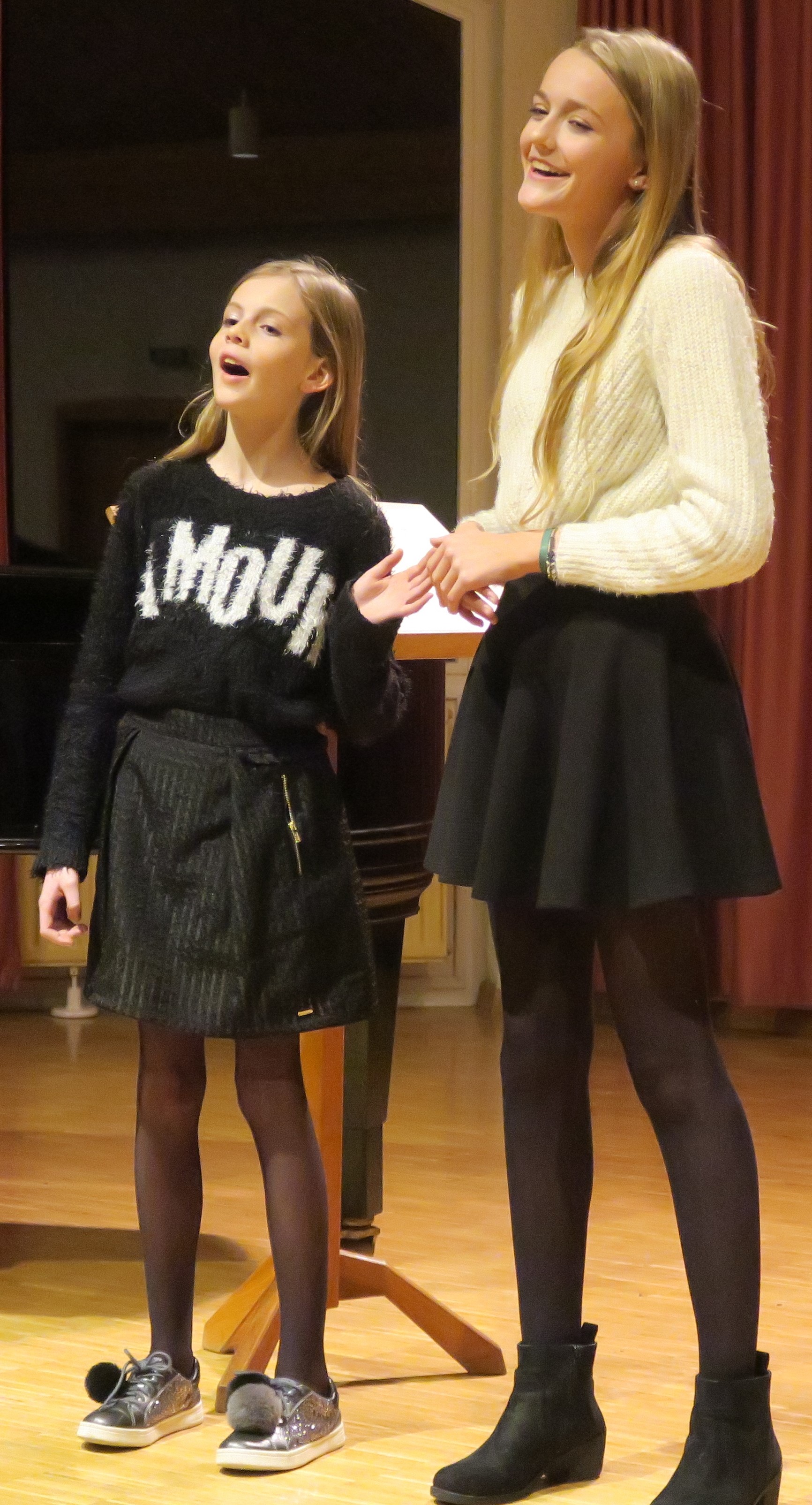 Mit erstaunlicher Klangfülle und meisterlicher Präzision spielte er auf der Tenorflöte und mit Klavierbegleitung durch Sabine Layer auch auf der Piccoloflöte zwei Stücke von Anton Heberle und Ignazio Sieber. Eine ganz andere, frische und unbekümmerte Art Musik kam von den beiden Mädchen Anna-Elea und Amelie, Enkelinnen der Chorsängerin Bärbel Bott. Frisch drauflos und nicht eng an die Noten gefesselt sangen sie einen Strauß moderner Lieder, aus Musical und Rap. Zu allen drei Nachwuchskünstlern bemerkte Wolfgang Digel: „ Ich bin überzeugt, dass wir heute Abend den Beginn großer Karrieren erleben durften.“