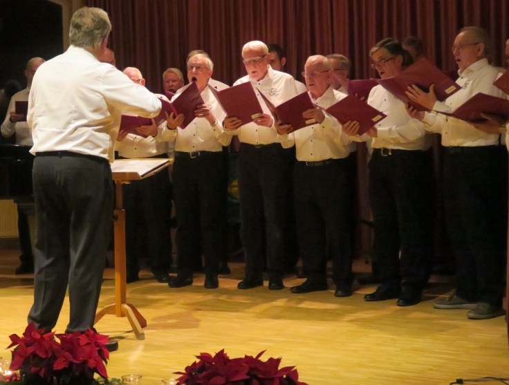 Der Männerchor, letztmalig geleitet vom scheidenden Dirigenten Wolfgang Layer, stellte die zu Weihnachten gesungene traditionelle deutsche Chorliteratur in den Mittelpunkt. Dazu gehörten vom Vorsitzenden Wolfgang Digel vorgestellt die einfühlsam gesungene „Heilige Nacht“, das alte Adventslied „Maria durch ein Dornwald ging“, das zum Mitsingen anregende „Vor langer Zeit in Bethlehem“, sowie das altbekannte „Süßer die Glocken nie klingen“ und die zum alten Repertoire des Männerchors zählenden „Weihnachtsglocken“, das mit dem aus unserem bekanntesten Weihnachtslied entlehnten Refrain „Stille Nacht, heilige Nacht“ die besondere Weihnachtsstimmung auslöst.