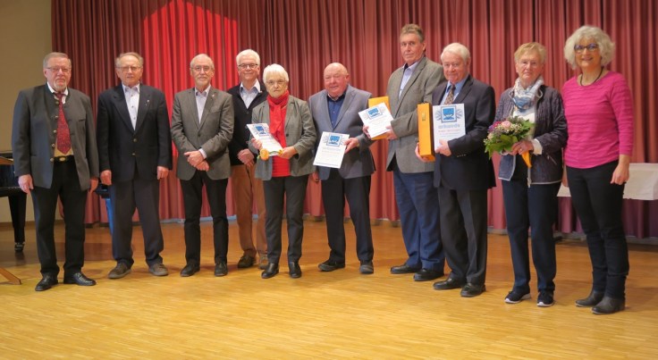 Für ihre langjährige Mitgliedschaft wurden Kurt Schwarz für 70 Jahre (leider war ihm aus gesundheitlichen Gründen eine Teilnahme nicht möglich), Alfred Fischle für 65 Jahre, Eugen Hetzinger für 60 Jahre, Ruth Koch für 50 Jahre sowie Karl-Heinz Baumann für 50 Jahre geehrt. Sie erhielten die Urkunde des Vereins und ein Geschenk.