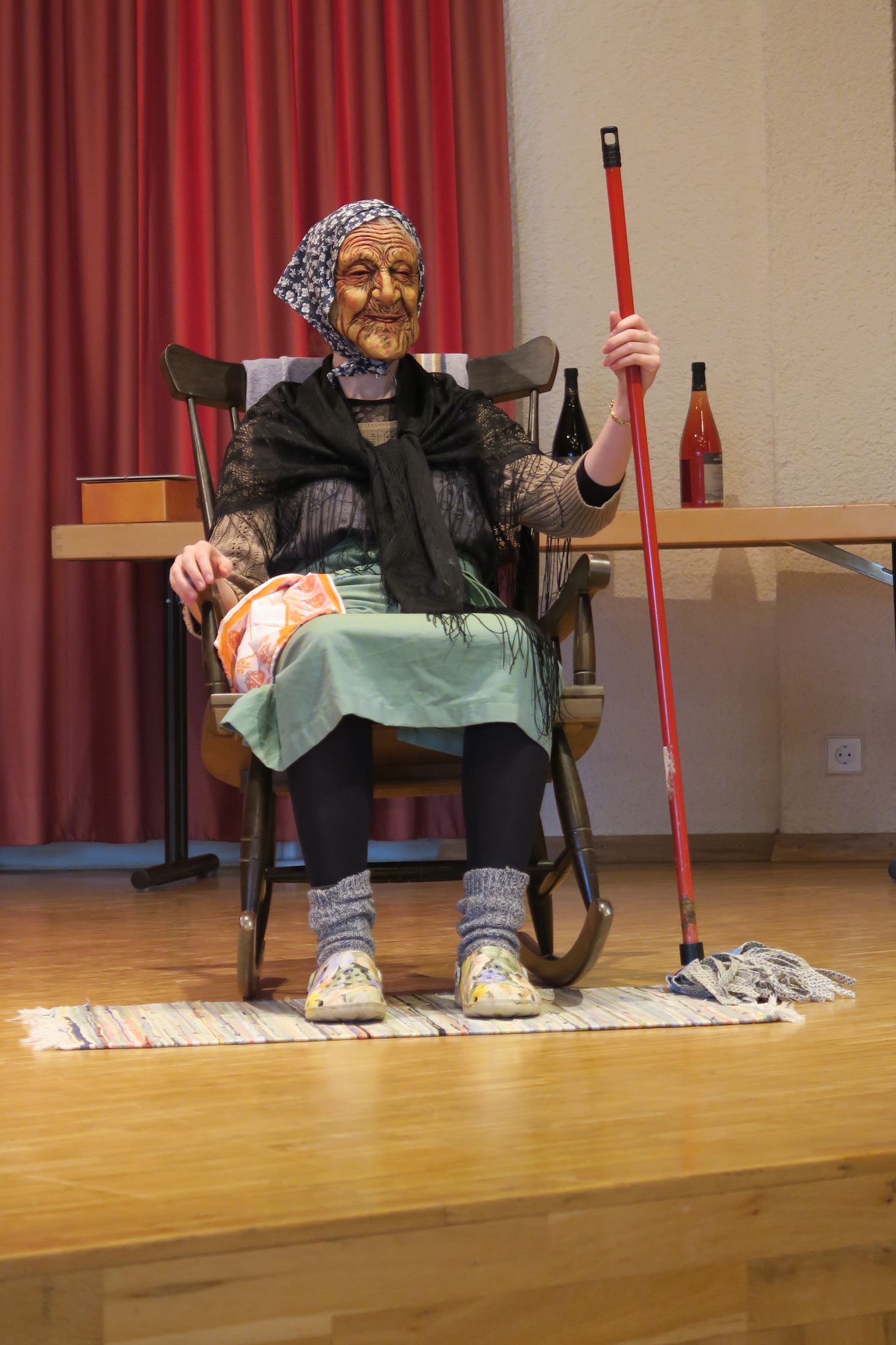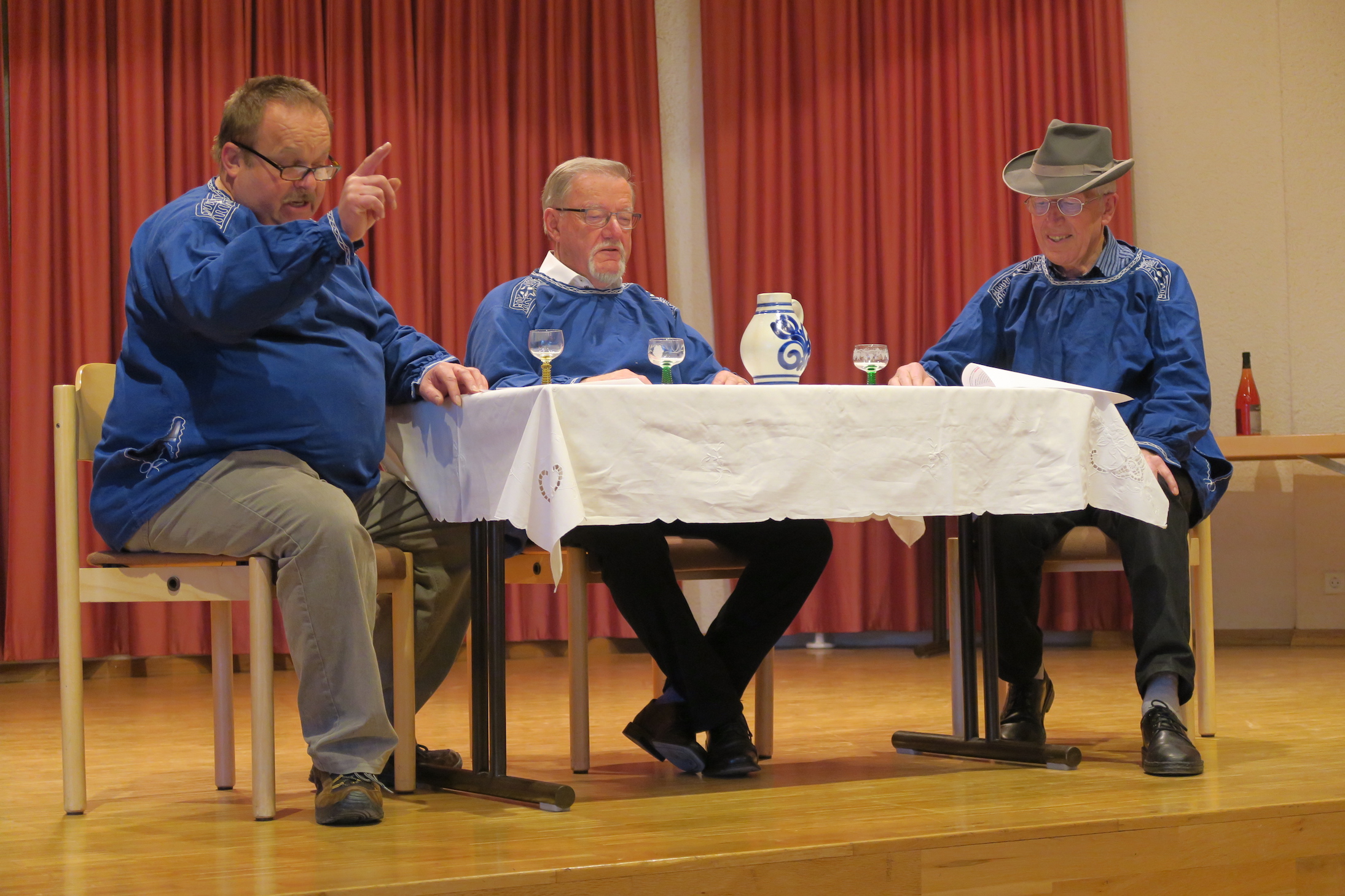 Mit ihrem Auftritt als neugierige Nachbarin des Bürgerhauses hatte Silke Gerboth-Sahm die Lacher auf ihrer Seite. Putzend und singend hat sie den Liederkranz und seine Mitglieder in allen Facetten kommentiert und auf die Schippe genommen. Walter Stürzl, Horst Kollitsch und Siegfried Gesierich erzählten am Stammtisch witzige Schurwälder Anekdoten.
