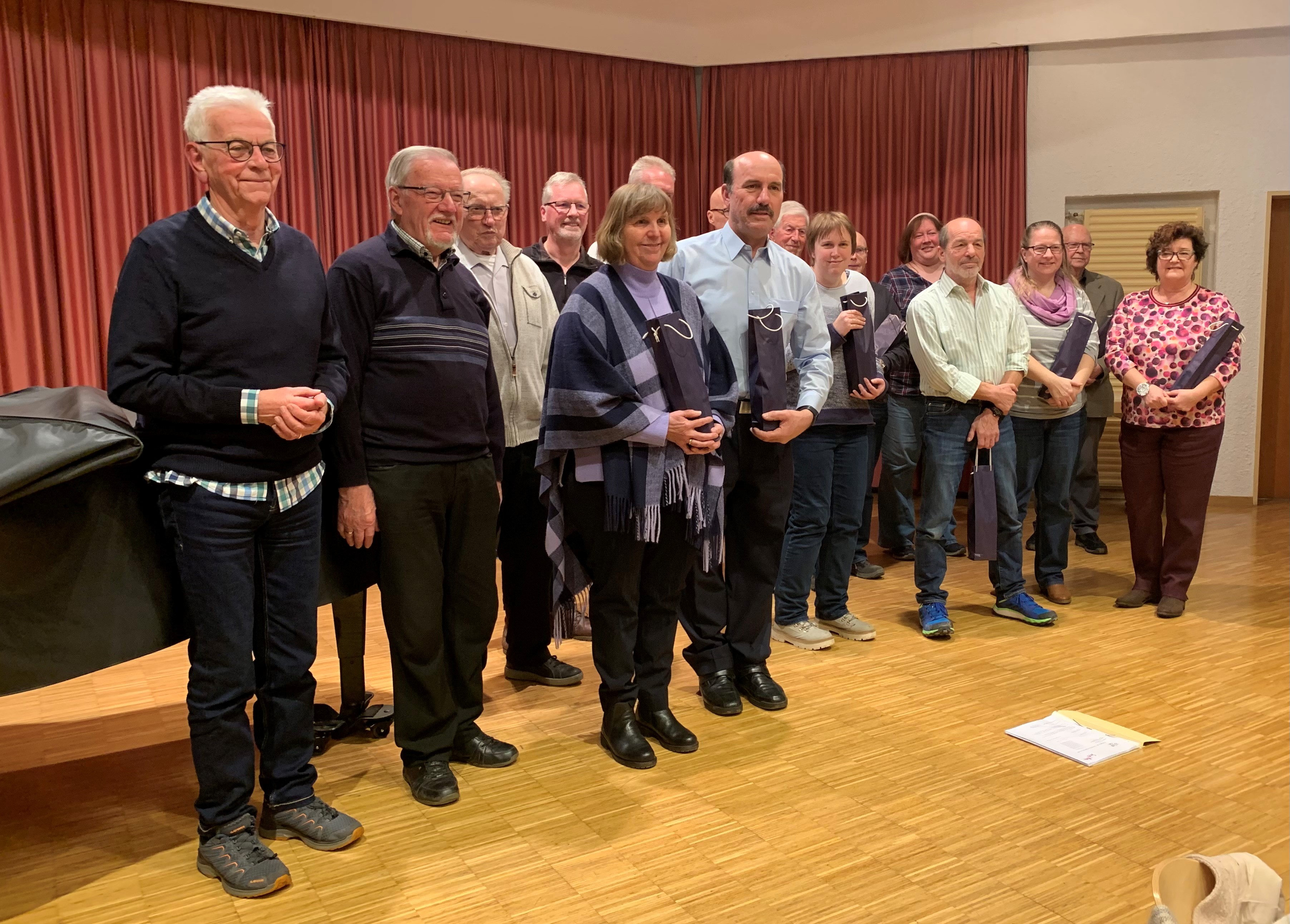 Im Anschluss daran wurden zahlreiche Sängerinnen und Sänger beider Chorformationen für regelmäßigen Probenbesuch mit einem Getränkepräsent geehrt.