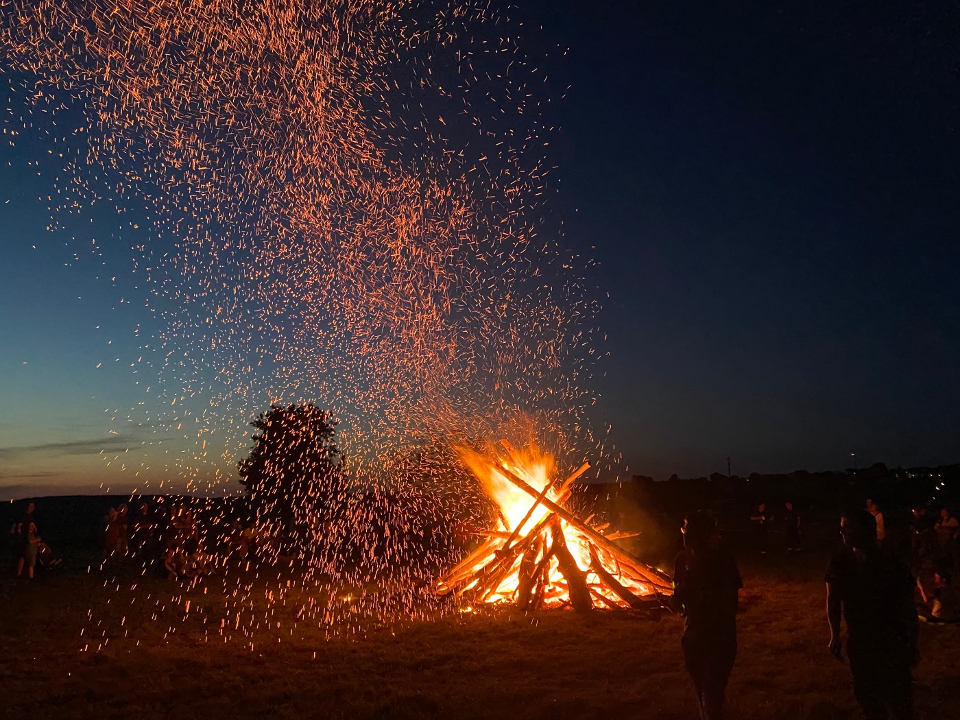 Längst hatten die Besucherinnen und Besucher ihre Plätze gefunden, als mit dem Einbruch der Abenddämmerung das Feuer durch Mitglieder der Jugendfeuerwehr entzündet wurde.