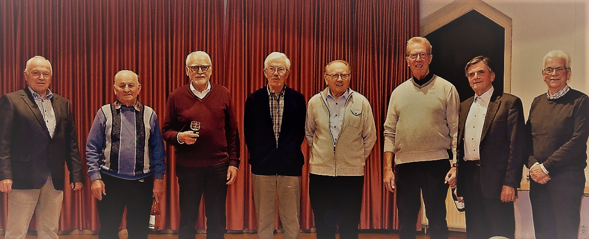 Fleißige Sänger wurden für regelmäßigen Singstundenbesuch geehrt. Von links: Wolfgang Digel, Hans Grau, Martin Sohn, Horst Kollitsch, Albrecht Kromer, Jochen Broer, Alfred Grau, Wolfgang Beck.