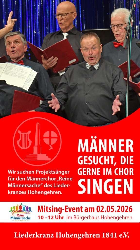 Am Montag, den 12.01.2026 treffen sich der Männerchor und Joy of Music zu den gewohnten Zeiten zur ersten Singstunde im neuen Jahr. Wir freuen uns auf alle Sängerinnen und Sänger, mit denen wir uns gemeinsam auf unsere anspruchsvollen Termine im neuen Jahr vorbereiten.