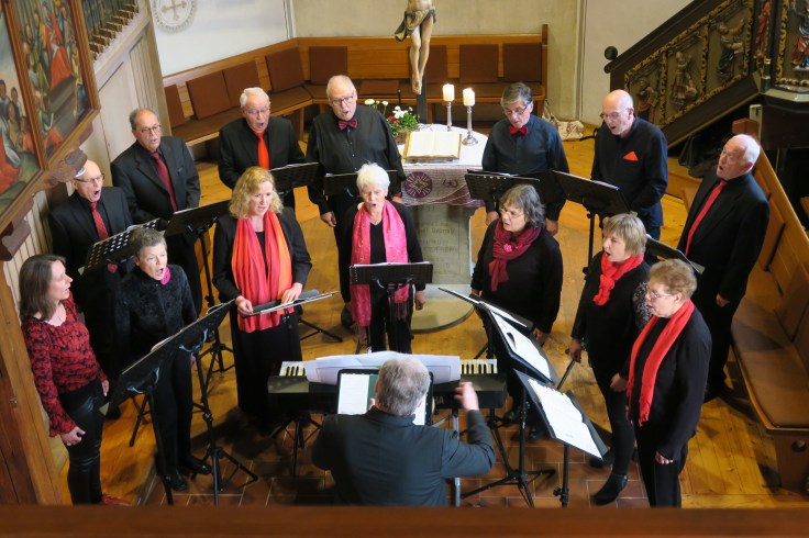 Für das Adventskonzert des Liederkranz Hohengehren, das am 3. Advent stattfand, hatte in diesem Jahr die katholische Kirche in Baltmannsweiler ihre Tore geöffnet. Es waren zunächst keine guten Voraussetzungen für das Konzert. Die Ankündigung einer unbeheizten Kirche ließ die Konzertbesucherinnen und -besucher in banger Erwartung zurück, ob sie vielleicht frierend der Chormusik zuhören müssen. Aber Dank des Engagements von Pfarrer Robert Aubele konnte die Kirche doch noch rechtzeitig beheizt werden. Und irgendwie hat sich das herumgesprochen, denn die Kirche war gut gefüllt.