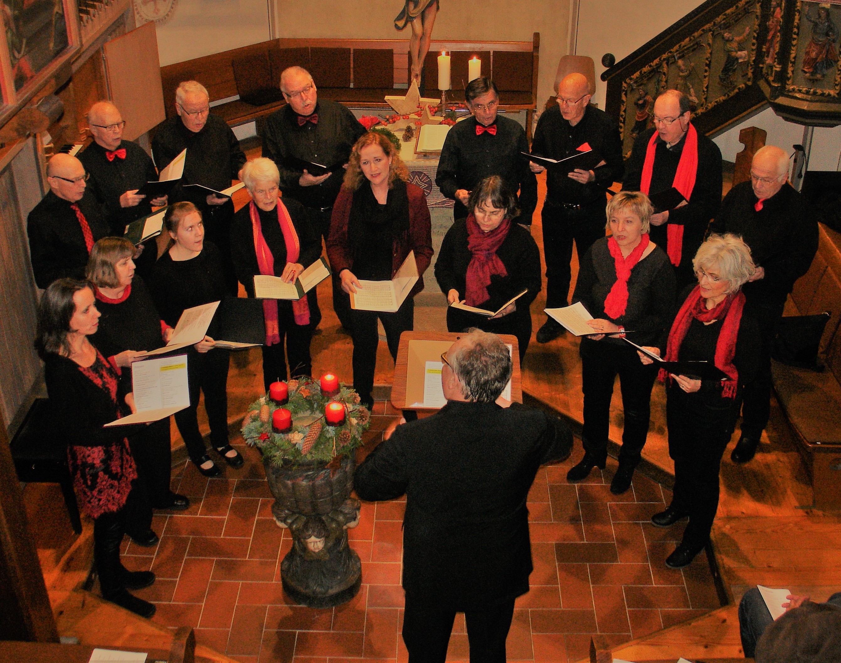 Für das Adventskonzert des Liederkranz Hohengehren, das am 3. Advent stattfand, hatte in diesem Jahr die katholische Kirche in Baltmannsweiler ihre Tore geöffnet. Es waren zunächst keine guten Voraussetzungen für das Konzert. Die Ankündigung einer unbeheizten Kirche ließ die Konzertbesucherinnen und -besucher in banger Erwartung zurück, ob sie vielleicht frierend der Chormusik zuhören müssen. Aber Dank des Engagements von Pfarrer Robert Aubele konnte die Kirche doch noch rechtzeitig beheizt werden. Und irgendwie hat sich das herumgesprochen, denn die Kirche war gut gefüllt.