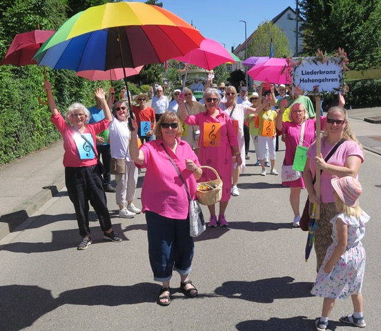 Sängerinnen und Sänger des Liederkranz Hohengehren marschierten fröhlich und bunt ausstaffiert beim Festumzug zum Musikvereins-Jubiläum mit.
