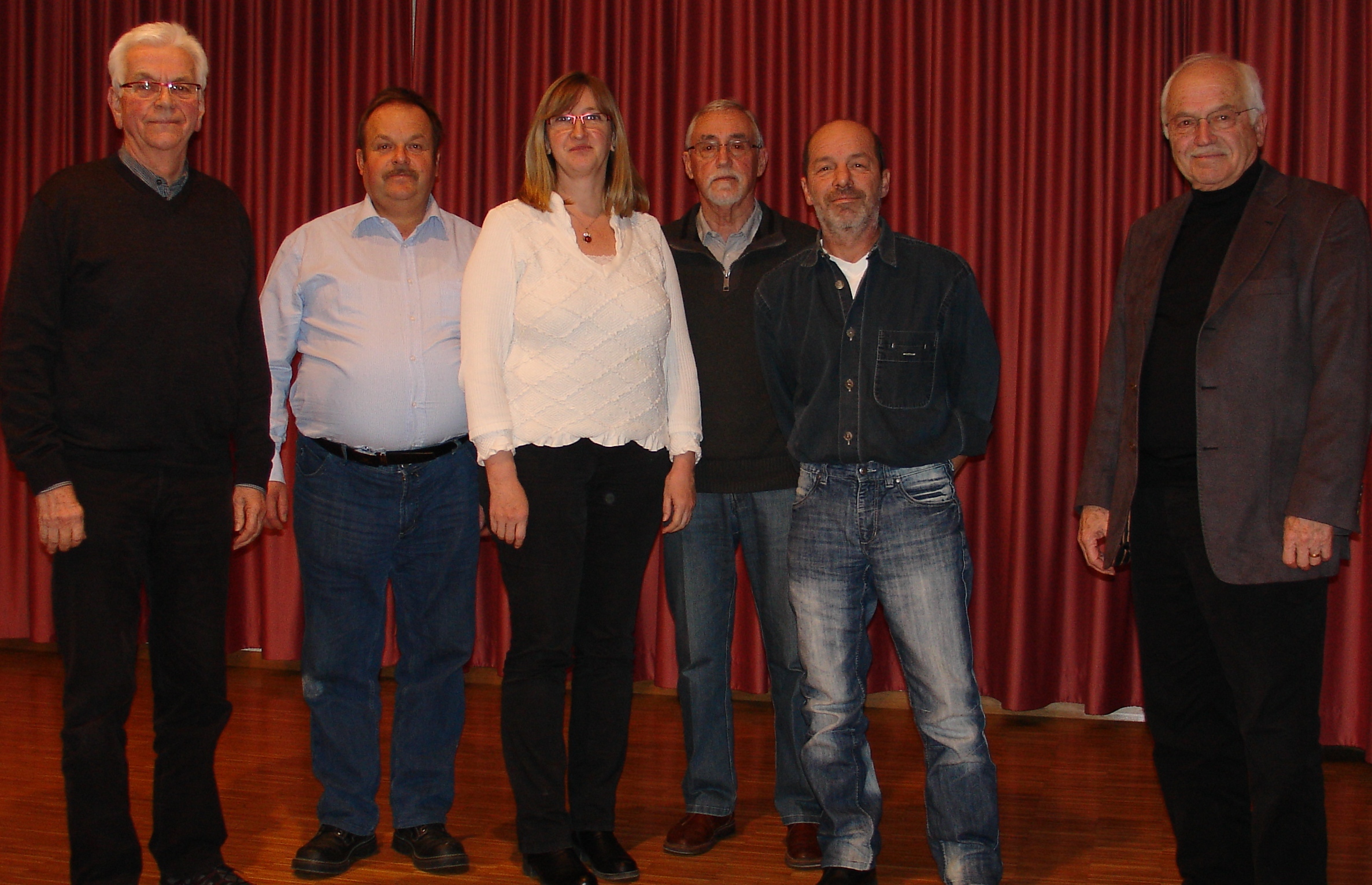 Das Foto zeigt von links: Vereinsrat Wolfgang Beck, Organisationsleiter Siegfried Gesierich, Schatzmeisterin Jutta Menges, Pressereferent Heinrich Maurer, Vereinsrat Eberhard Roos und Co-Vorsitzender Wolfgang Digel.