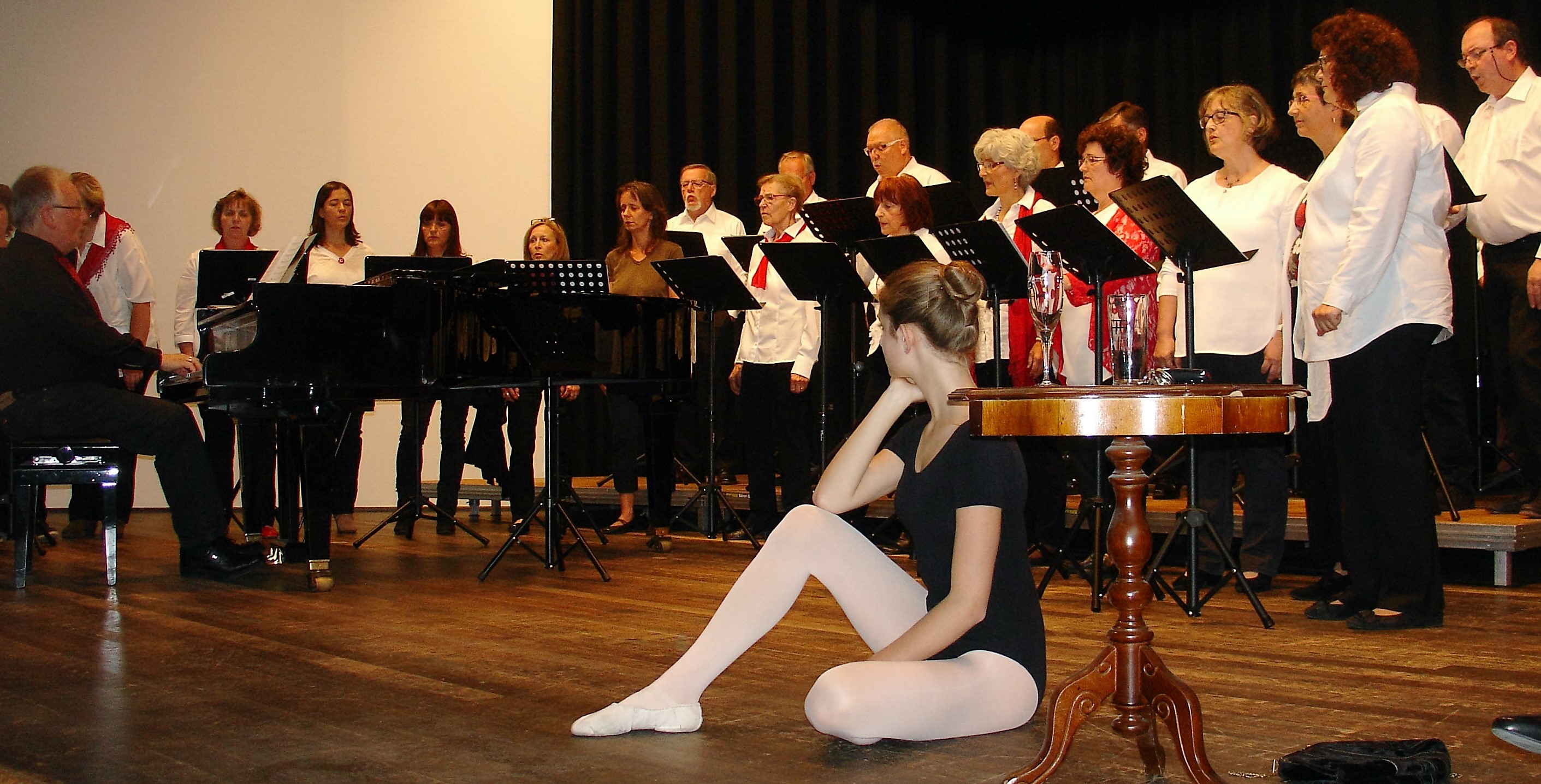 Mit einem großen Konzert hat der Liederkranz Hohengehren am Samstag, 11. Juni 2016, im Kulturzentrum Baltmannsweiler seine Veranstaltungen im Rahmen des 175-Jahre-Jubiläums fortgesetzt. Neben den von Wolfgang Layer dirigierten zwei eigenen Chören, dem durch Sänger aus Baltmannsweiler verstärkten Männerchor und dem jungen Chor „Joy of Music“, standen außerdem der Frauen- und der Gemischte Chor der Concordia Wäldenbronn, beide dirigiert von Sabine Layer, auf der Bühne. Als Besonderheit wurden die Auftritte von der Schauspielerin Susanne Weckerle sehr amüsant und kurzweilig moderiert und von den beiden Tänzerinnen Florine Brand und Julia Zavt choreografisch begleitet.